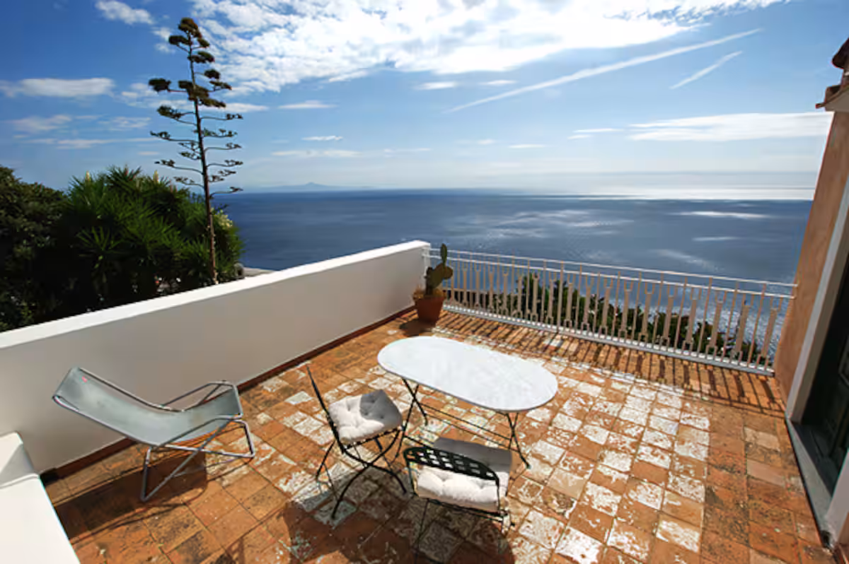 Tra i punti forti della casa ci sono la splendida vista su Capri, i tramonti spettacolari e una piccola piscina panoramica (aperta da maggio a ottobre), ideale per rilassarsi dopo una giornata alla scoperta della Costiera Amalfitana.